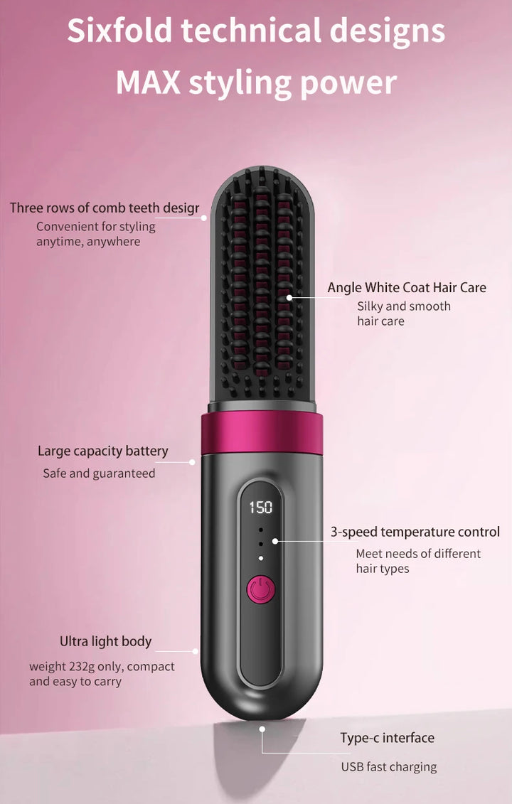 Equipped with 3-speed temperature adjustment, 30s Rapid heating, lightweight design, long lasting battery life & straight curly dual-purpose